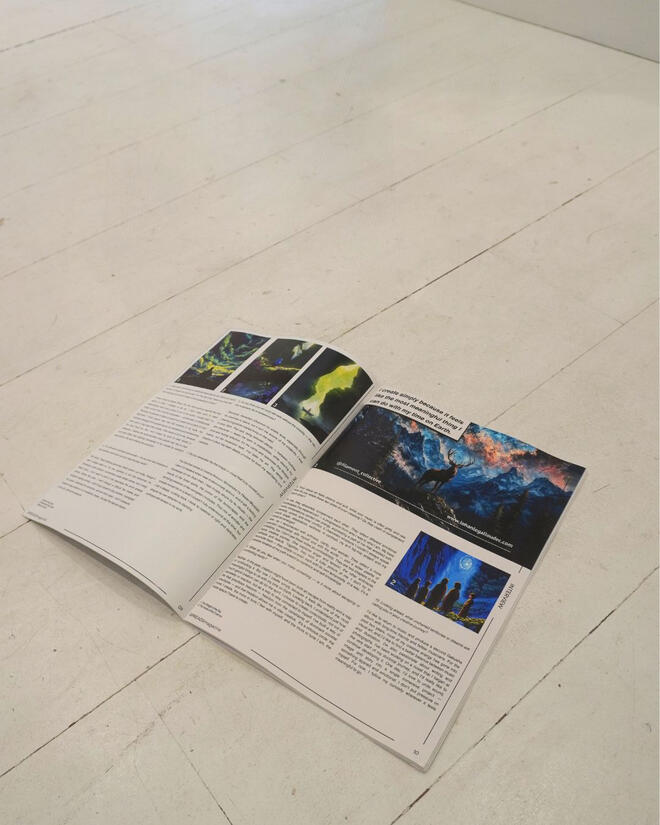 | Upload your artwork, short bio, and links. We review every submission. | Accepted artists get a guaranteed 3 -page spread in the next issue. | Distributed free at international location + available print-on-demand worldwide. |